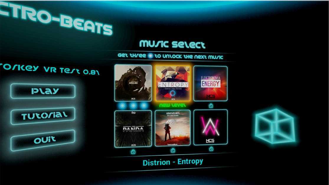 ElectroBeats 是一款结合电子风格和节奏的游戏,你需要转动头部来控制方向。 敲击飞向你的音符,当紫色音符接近时点头。