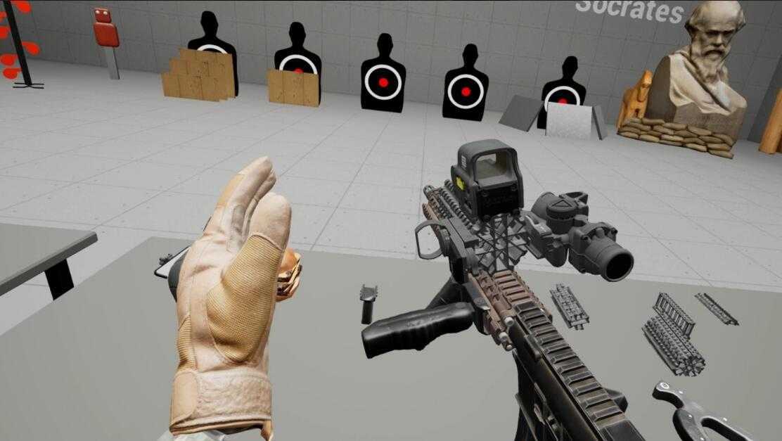 枪沙盒模拟器射击 VR 游戏,一切皆有可能,完全物理的双手 – 建造任何可能的枪,设计物理系统。