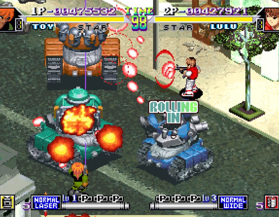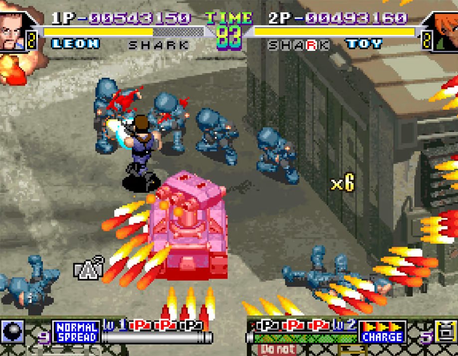 SHOCK TROOPERS 2nd Squad 是 SNK 于 1998 年推出的军事动作游戏。四名雇佣兵奋起阻挠大公司的野心。除了主攻、武器和跳跃能力外,游戏中还增加了车辆,这些车辆与分支路径一起为玩家提供了选择舞台方式的最大自由。